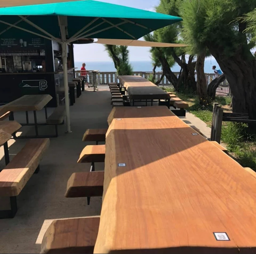 Restaurant panoramique sur la plage des Cavaliers, parfait pour profiter d’un repas au coucher du soleil face à l’océan et aux surfeurs.